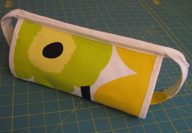 For the summer course that I'll be teaching in a couple of weeks' time I did get this four-zipper-poach finalized. It has been a very popular pattern among bloggers, but I hope my students haven't made the acquaintance yet. I sewed it from Marimekko fabrics that I had in store. I used some patchwork fabric in the middle and zippers were cut from endless zipper - I've finally found a trick that makes it sooo easy to get the slide in. Even if they accidentally slide out again...